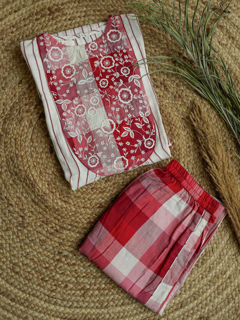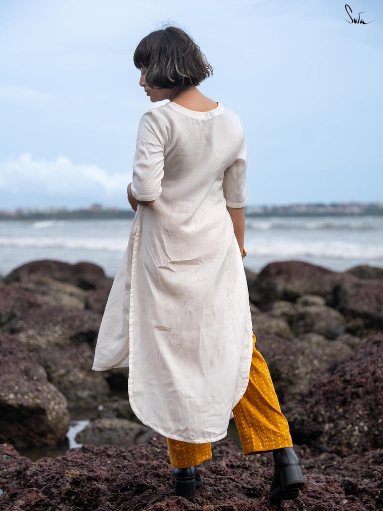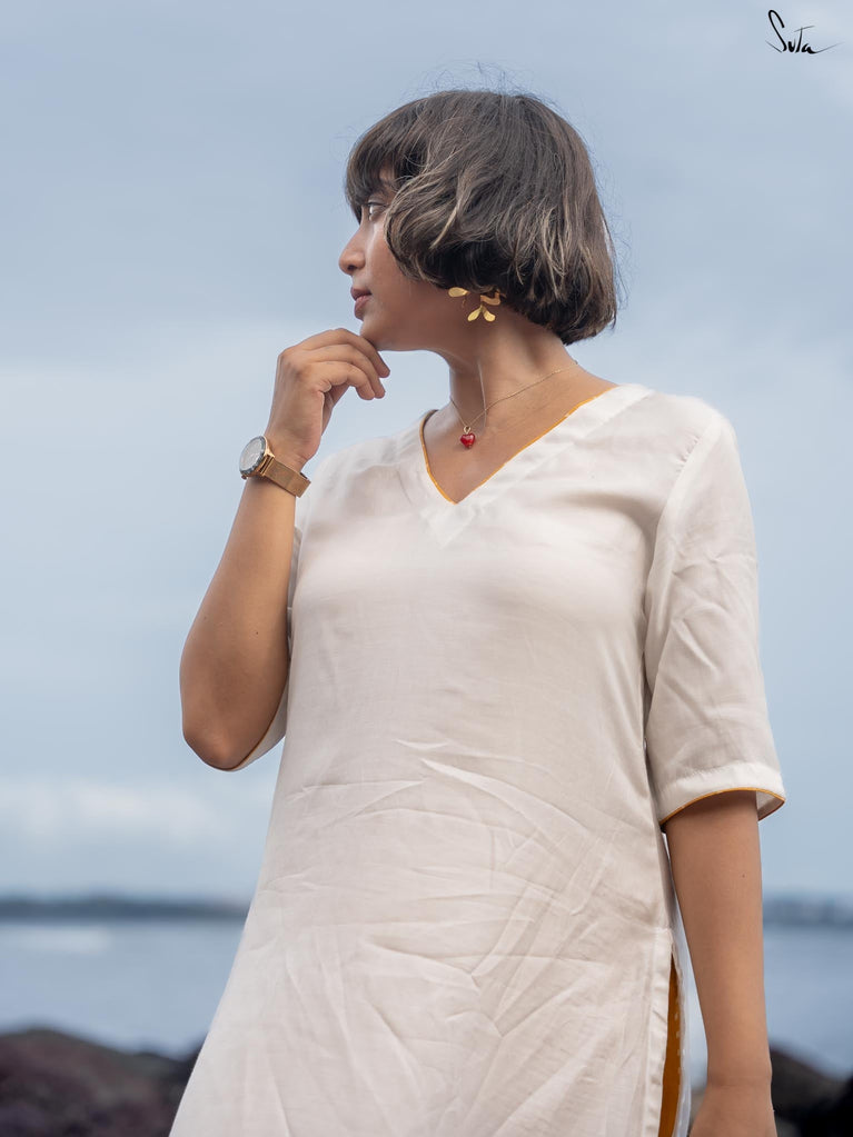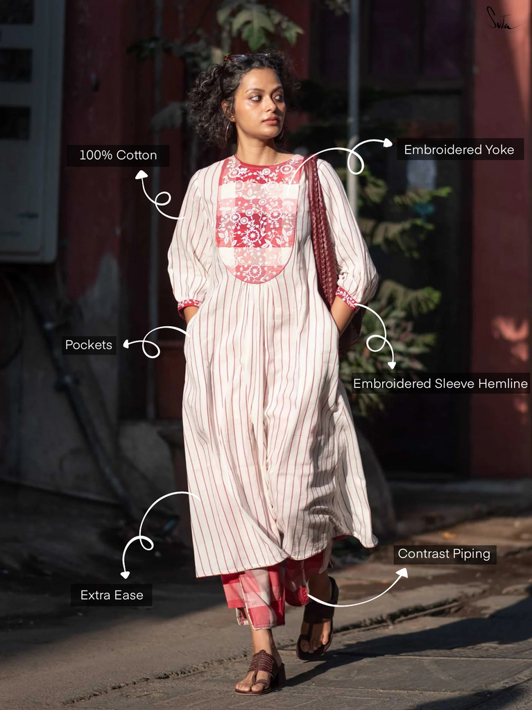 Bright, playful, and full of movement, this blouse mirrors the lively hues of Basant. The soft cotton fabric keeps it breathable, while the V-neck and quarter sleeves offer an easy, flattering fit. Side elastic adds gentle stretch, and the back keyhole detail finishes it with a touch of charm.