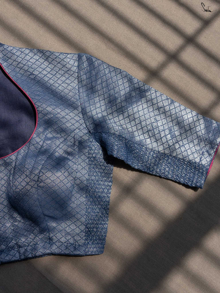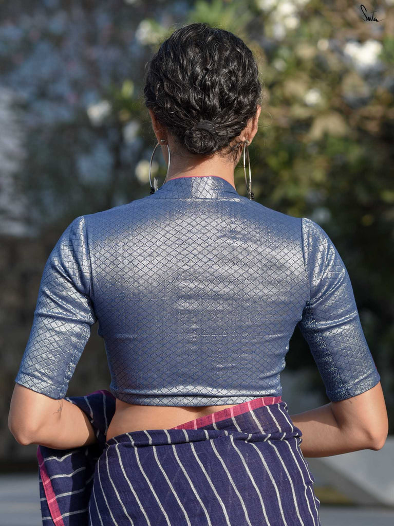 Discover the charm of Chandni Jadoo, a beautiful blue blouse crafted from cotton zari. With its elbow-length sleeves, scoop neck, and easy front hook opening, this blouse perfectly combines style and comfort. The stretchable, padded design offers a comfortable and flattering fit, allowing you to move with ease while looking stunning.