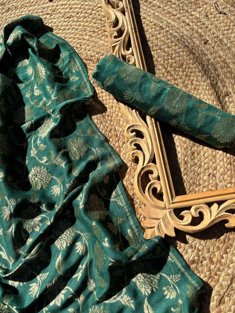 Blouse: The blouse featured in the image has been tailored from the blouse piece provided with the saree. You may choose to recreate this design or customize it as per your preference.
