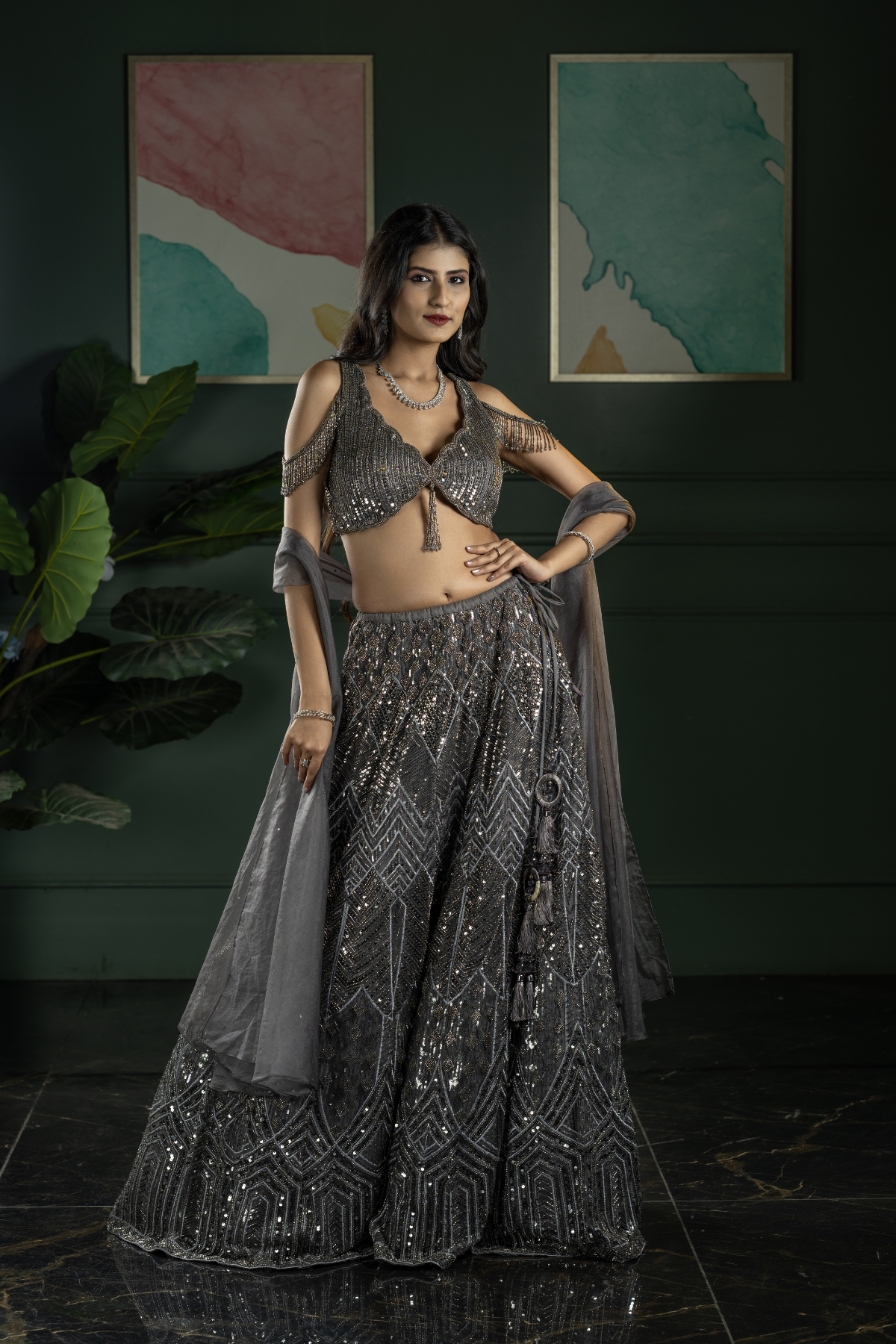 Net lehenga with Full Steal Grey Sequence Work on lehenga & Blouse