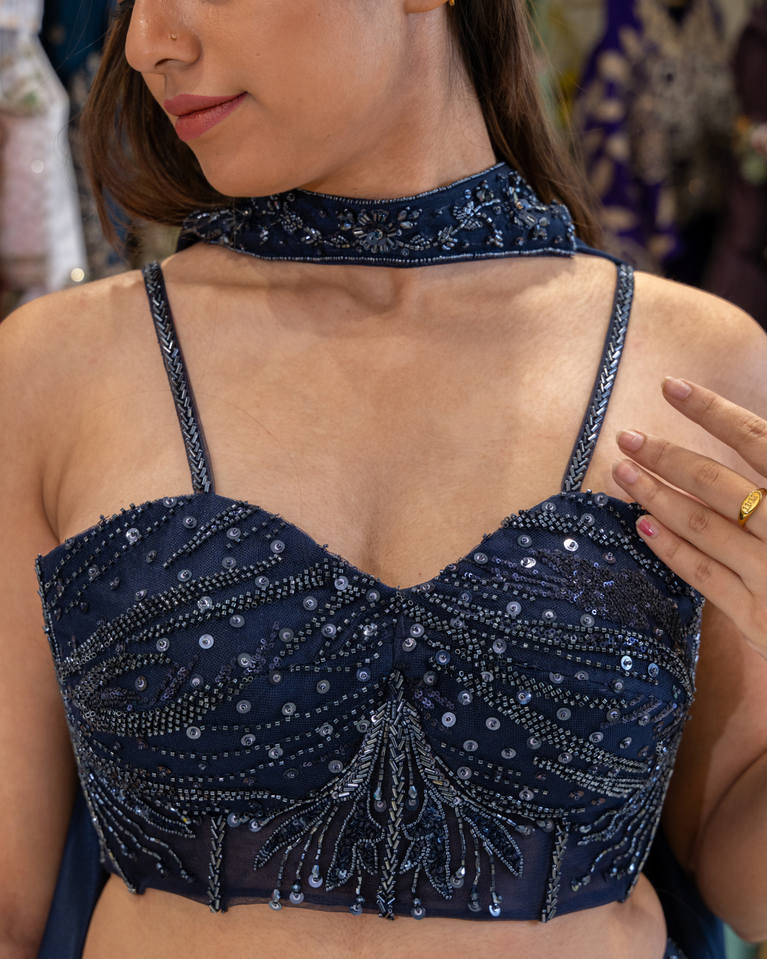 Net Fabric Lehenga with Cutdana & Sequin Work | Cord-Fit Blouse with Choker Dupatta