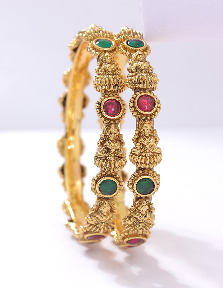 Matt-plated bangles with Ruby and Green Kempu stones—elegant, high-quality, and perfect for any occasion!