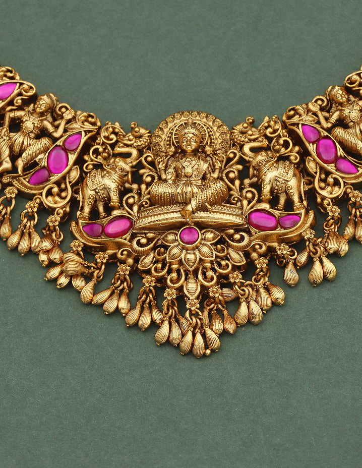 Designer Matt Rani Pink Lakshmi Devi Long Haaram Set