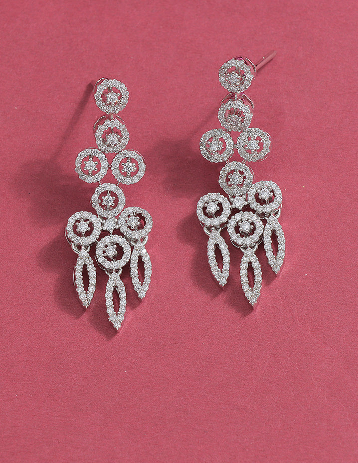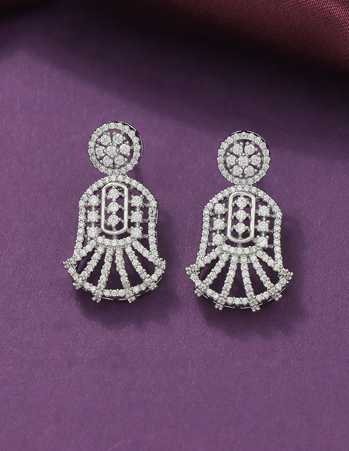 This Designer Zirconia Elegance Necklace Set features sparkling white stones enhanced by a durable rhodium polish. Its refined craftsmanship adds a sophisticated glow to any ensemble.