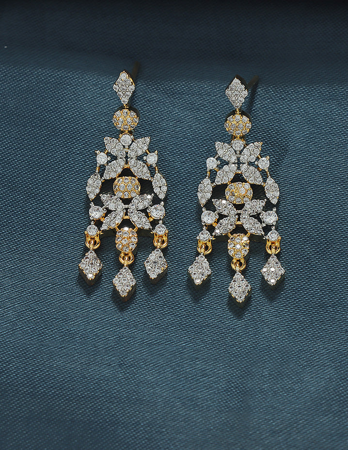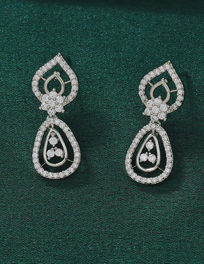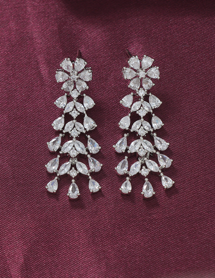 A radiant Rhodium-toned necklace and earring set adorned with sparkling Bud and floral motifs, perfectly blending elegance and charm for your special occasions.