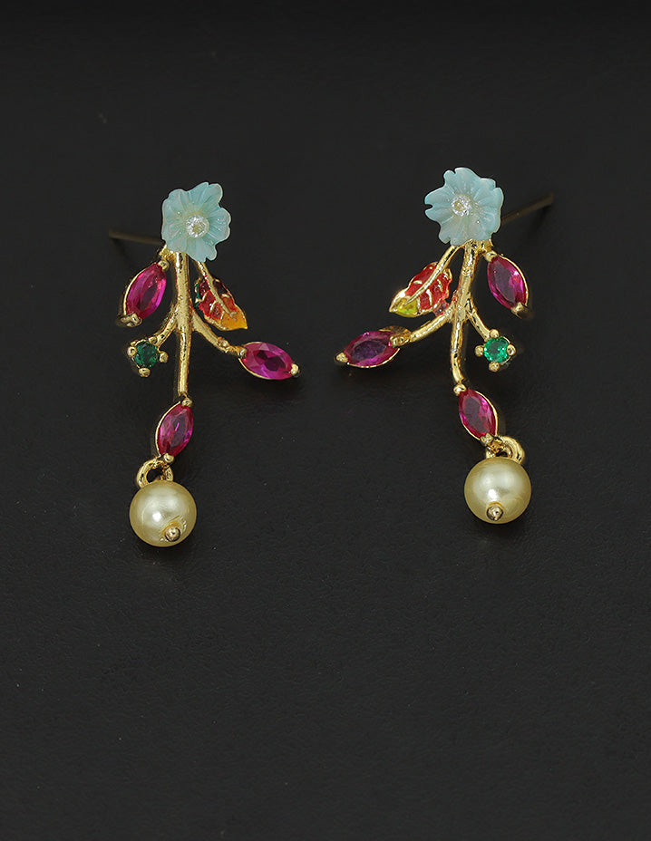 A radiant gold-finish necklace set blooming with colorful floral motifs, shimmering crystals, and pearl drops. An elegant choice for festive wear, bringing a fresh burst of nature-inspired charm.