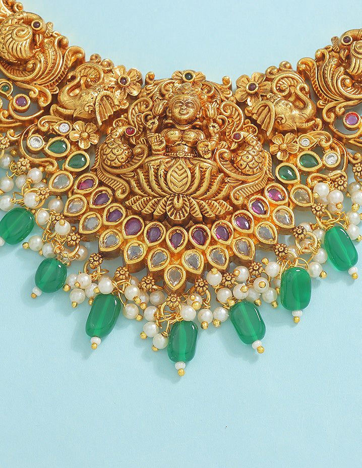 Designer Lakshmi Devi Emerald Matt Kempu Necklace Set