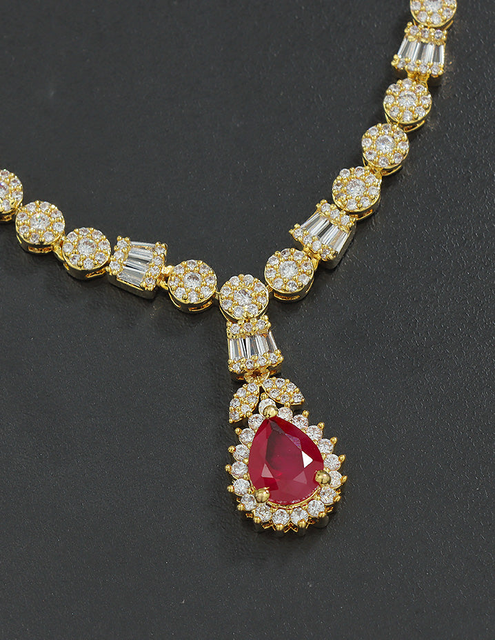 Designer Zirconia Royal Ruby Beads Kempu Necklace Set