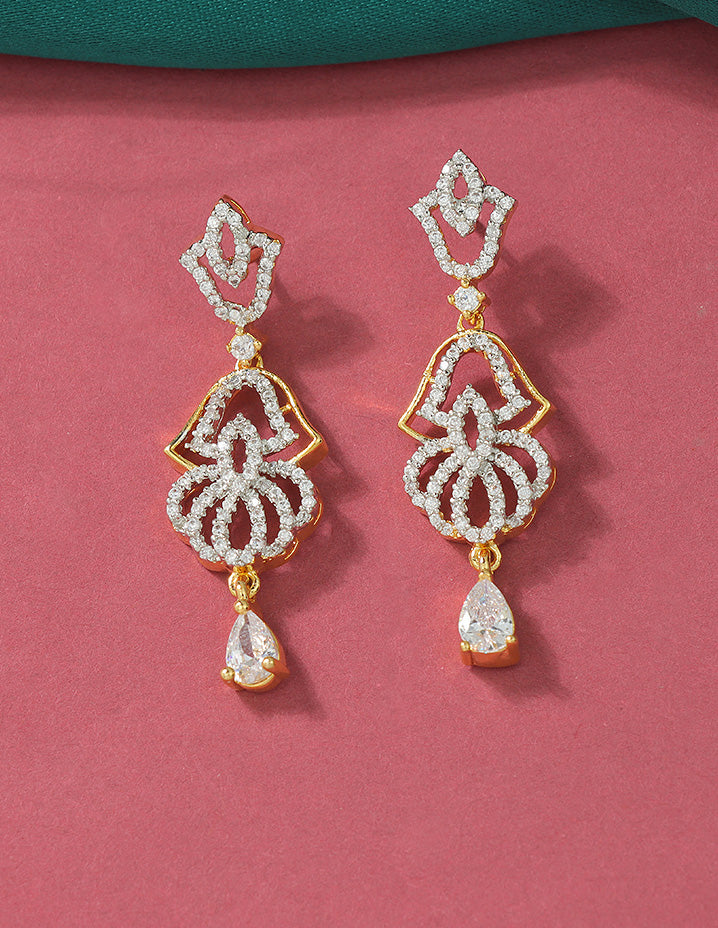This Designer Gold Polish Zirconia Necklace Set is the perfect accessory for elegant occasions. The beautiful combination of white AD stones adds a touch of sophistication to any outfit. Crafted with a high-quality Gold polish, this necklace set is sure to make a statement.