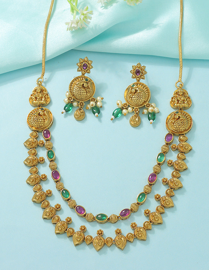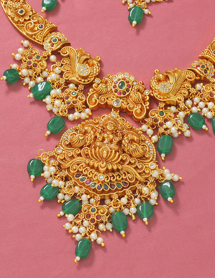 Designer Radiant Emerald Matt Kempu Necklace Set