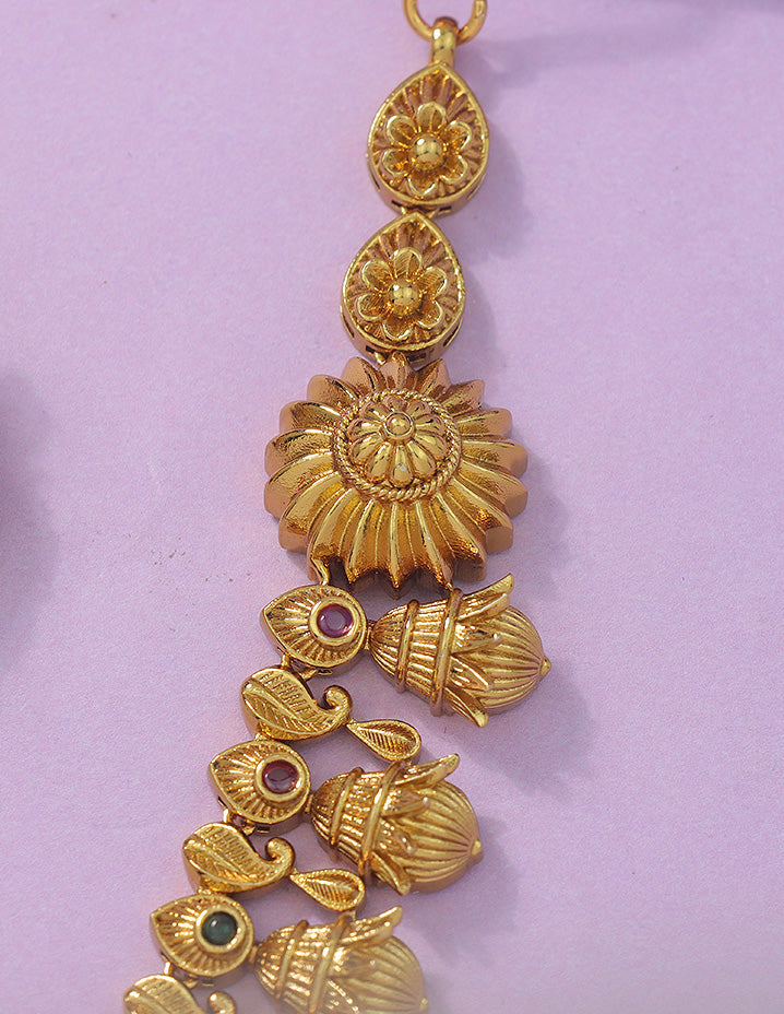 Embrace classic elegance with the Divine Heritage Coin Set, adorned with intricately embossed antique-style coins and paired with matching earrings—perfect for a timeless traditional look.