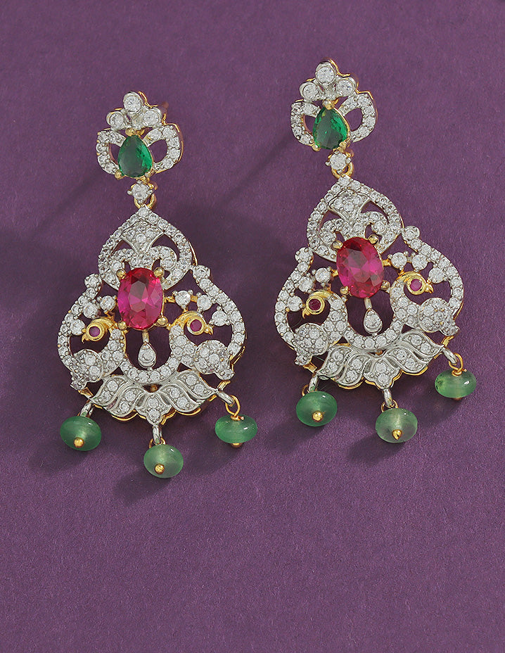 This stunning GJ-polish CZ necklace set is the perfect blend of elegance and charm. Its eccentric design, studded with sparkling American diamond stones, is a true visual treat.