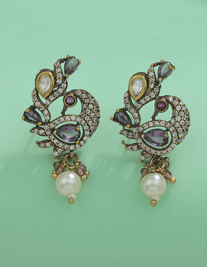 A stunning blend of tradition and beauty, this handcrafted temple-style necklace features intricate peacock motifs, pearl drops, and gemstone detailing. Paired with matching earrings, it's perfect for festive occasions and bridal charm.