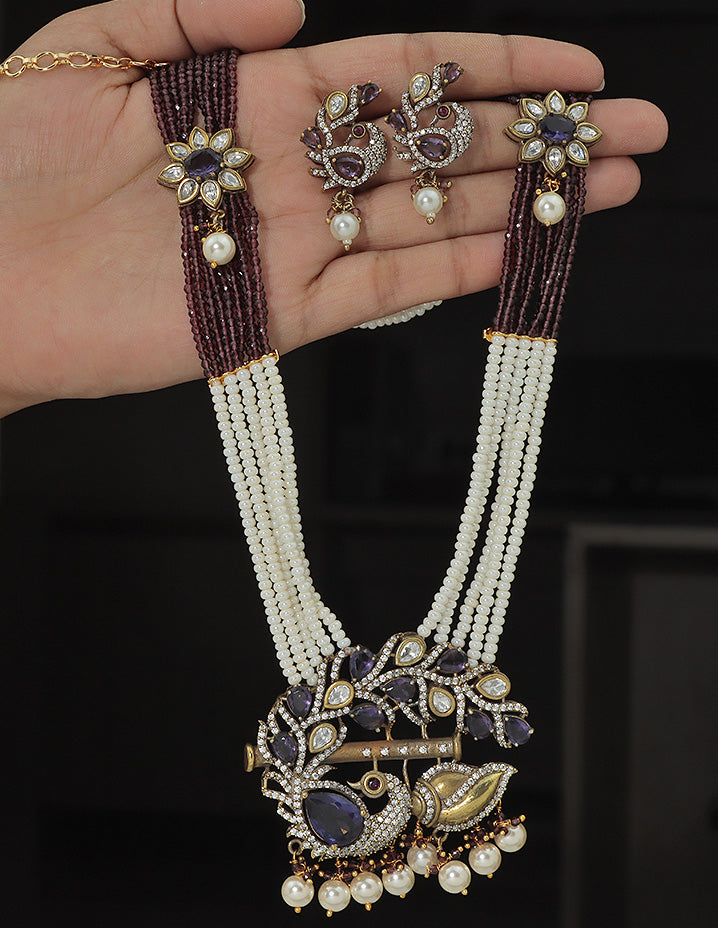 Designer Victorian Peacock Elegance Temple Set Beads Mala
