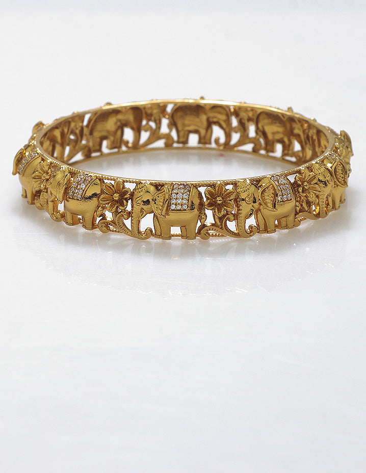 Make a timeless statement with our Zircon Gold Polish Bangles, featuring delicate floral CZ design. Elegant solo or stacked!