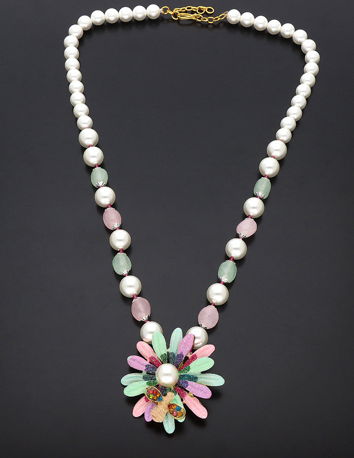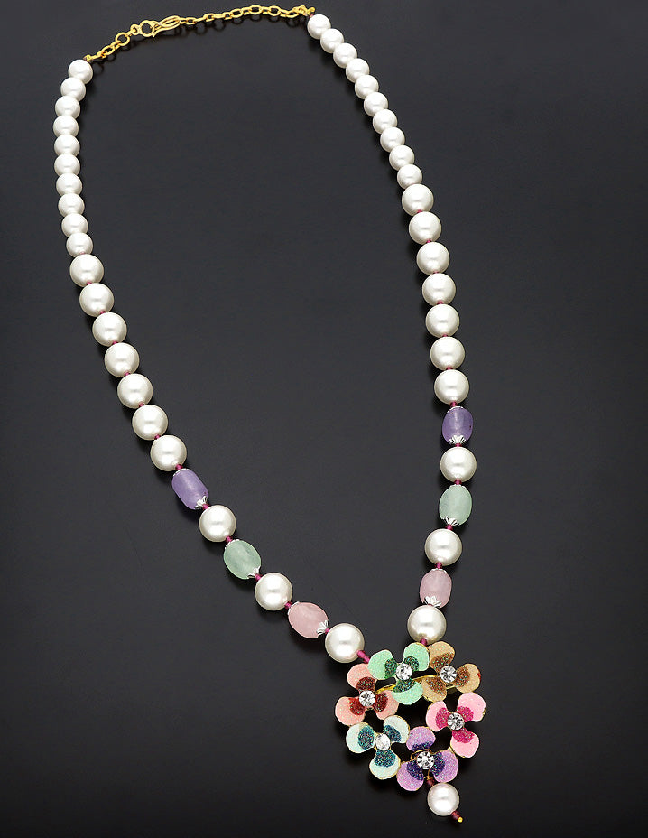 Designer Pearls and Monalisa Beads Floral Pendant Mala
