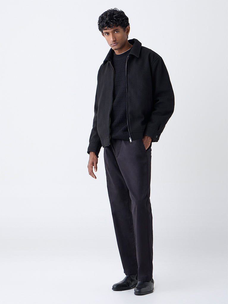 Ascot channels urban sophistication with this black suede jacket, where tactile richness meets modern utility. Styled with a sharp collar, zipper placket, and dual chest pockets, it balances structure and ease for a versatile smart-casual layer.