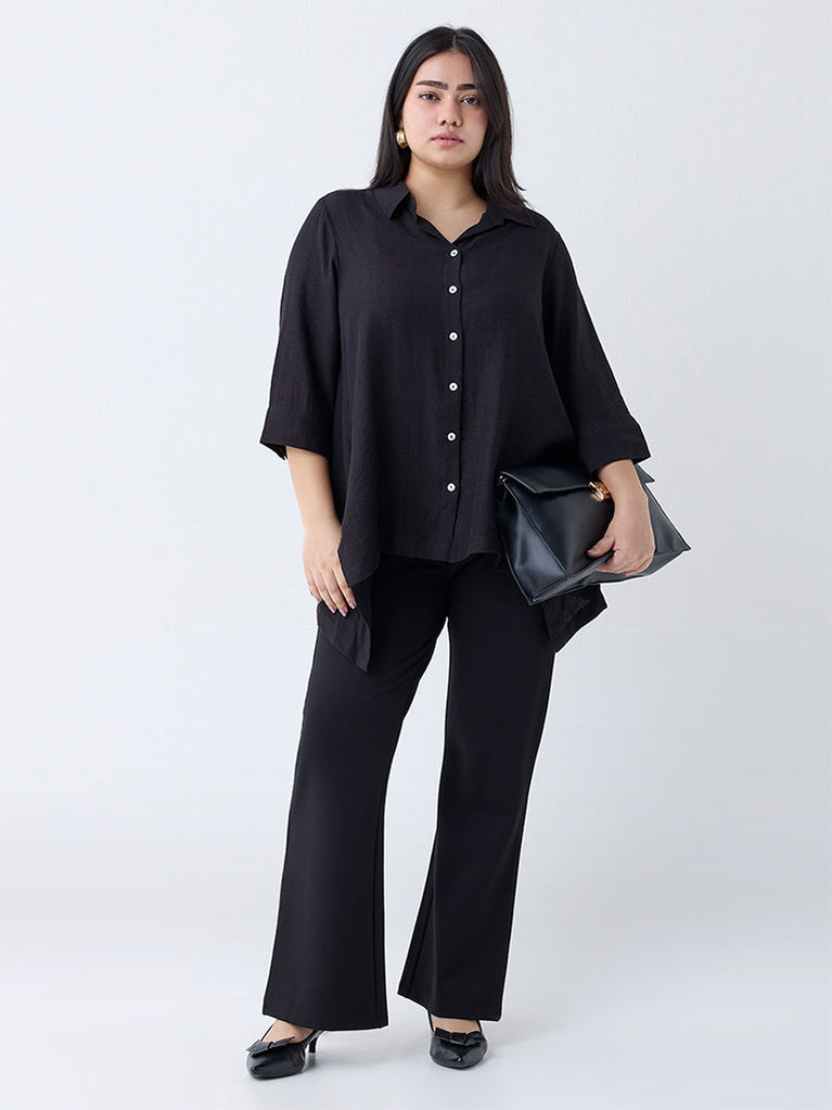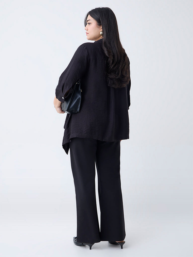 Understated yet striking, this black shirt from Gia brings modern detailing to a wardrobe essential. The structured collar and three-fourth sleeves offer polished balance, while the asymmetric hem adds an unexpected edge for contemporary appeal.