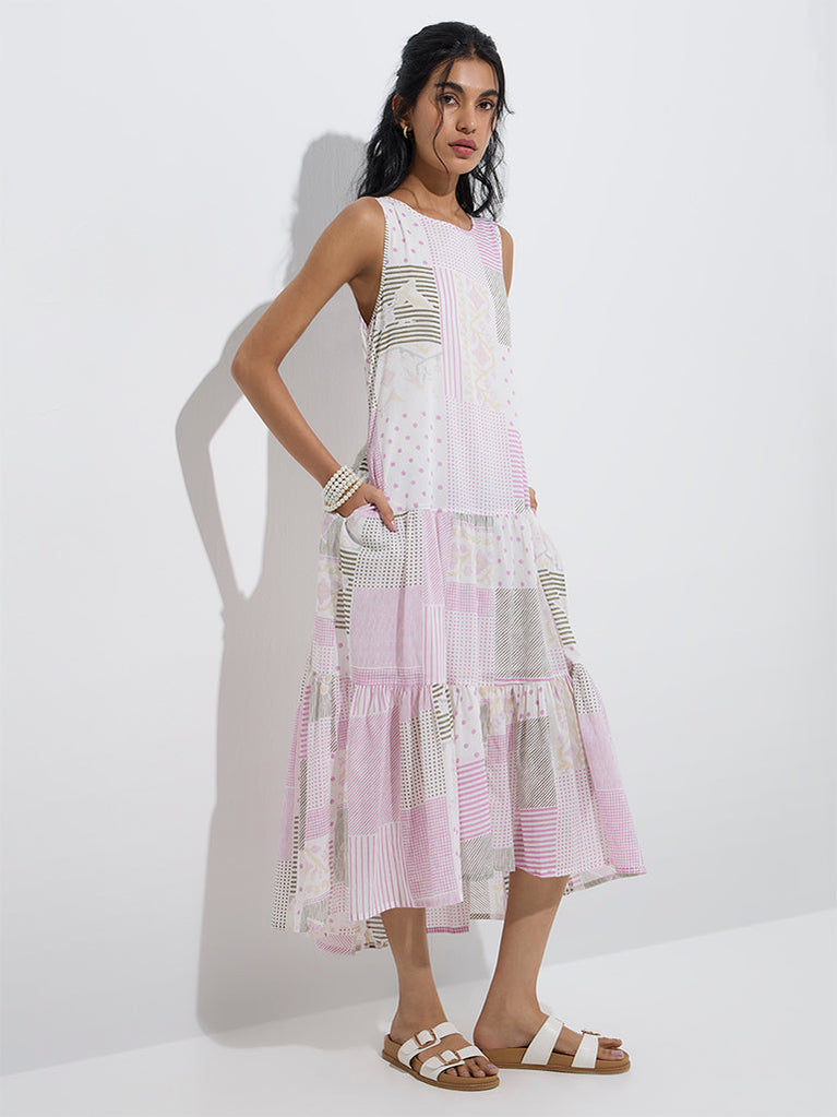 Bombay Paisley Pink Printed Cotton-Blend A-Line Dress