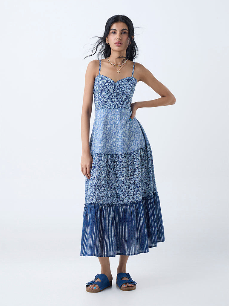 Bombay Paisley Dark Blue Printed Cotton Tiered Dress