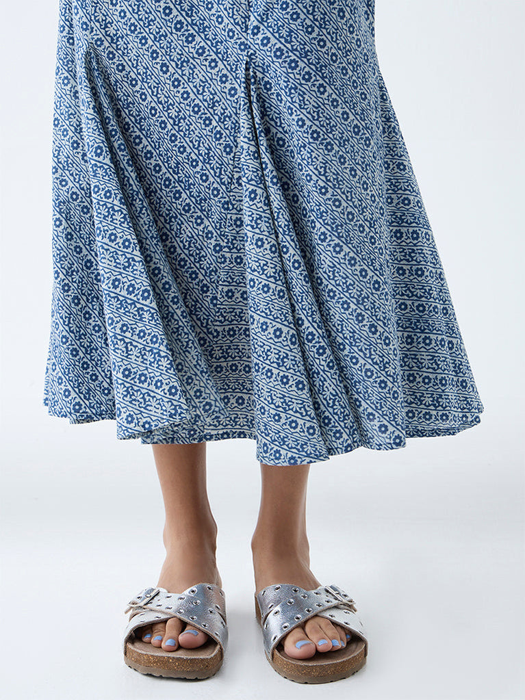 Bombay Paisley Blue Floral Detailed Cotton Skirt