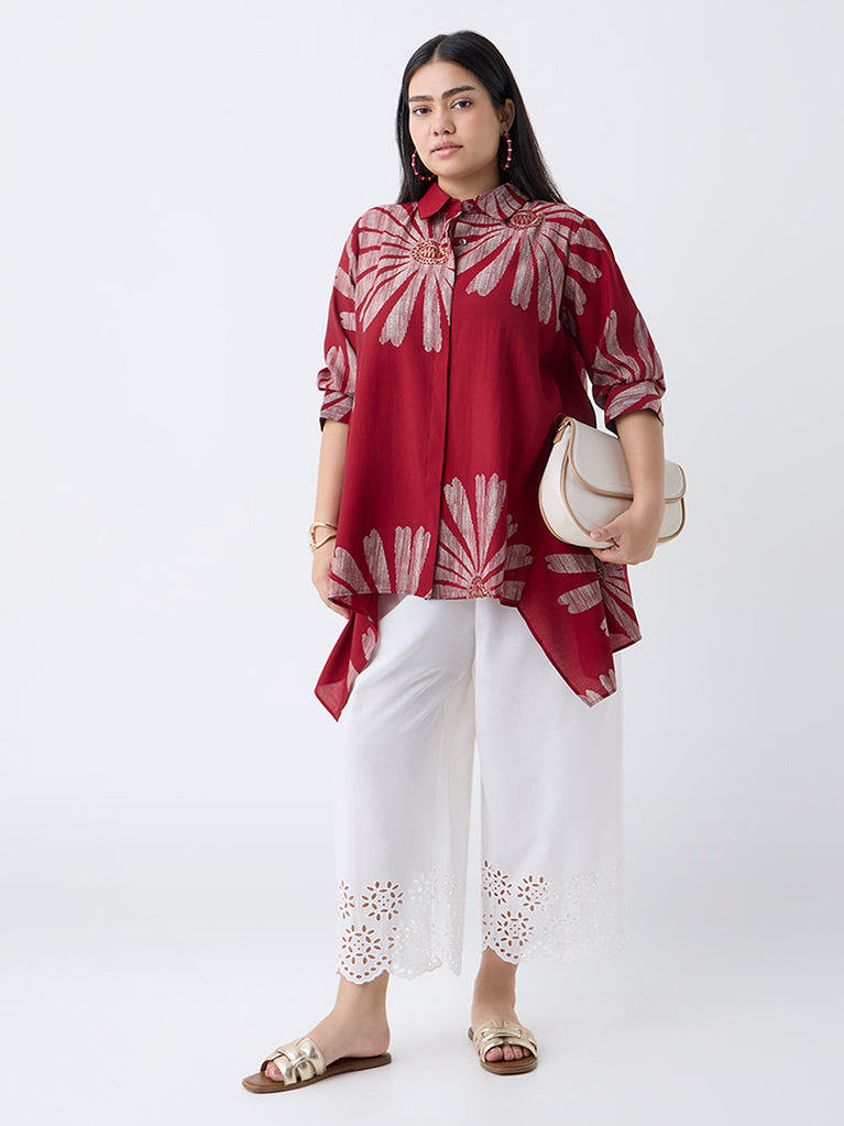 Diza Red Floral Printed Asymmetric Tunic