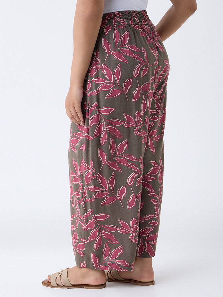 Diza Taupe Leaf Pattern Palazzos