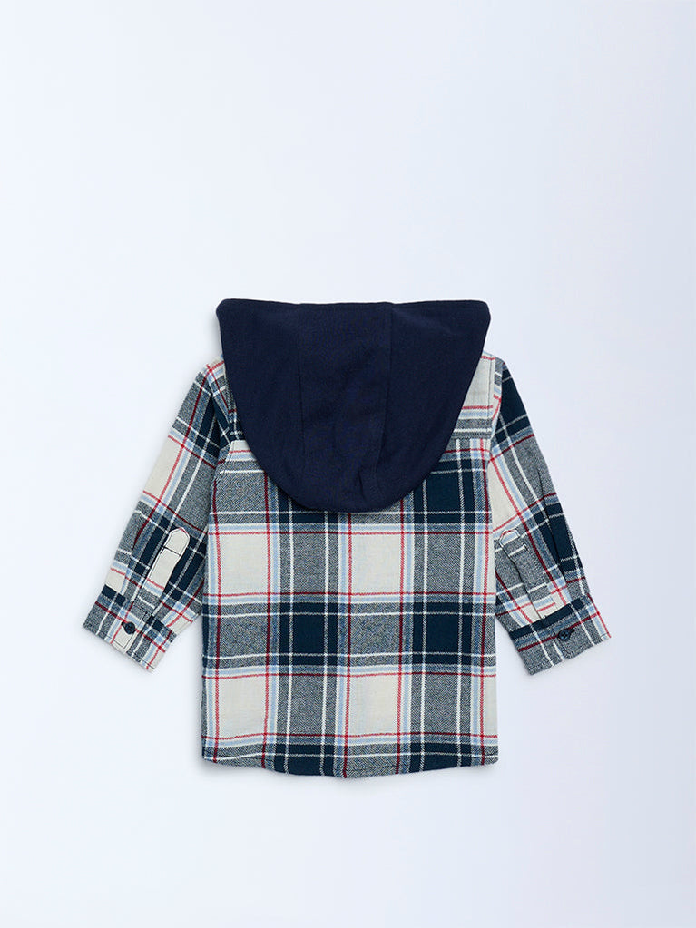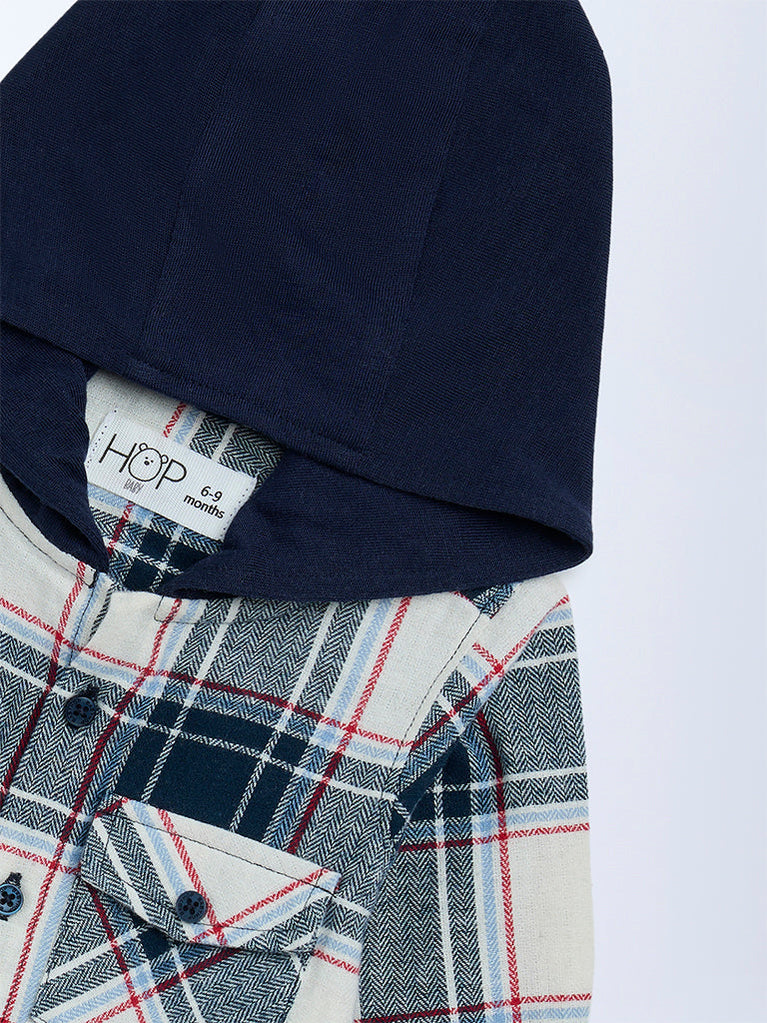 HOP Baby Boys Navy Checkered Hooded Cotton Shirt