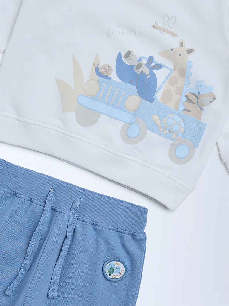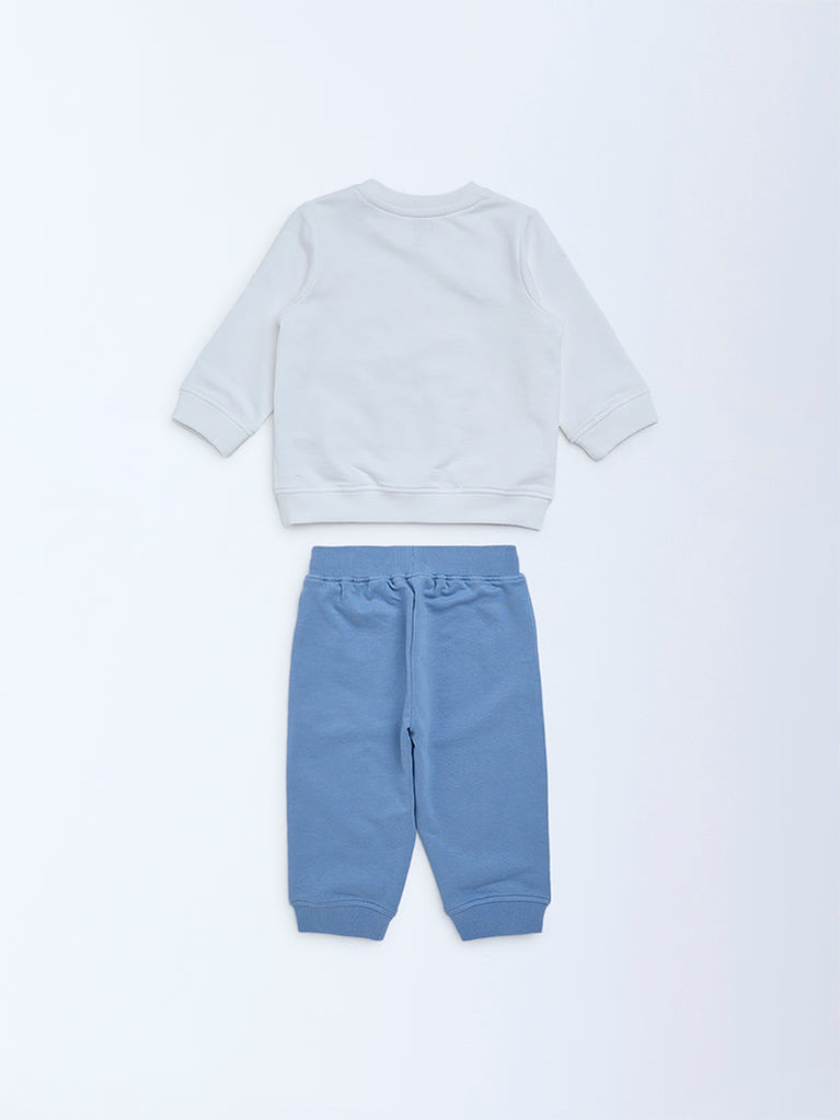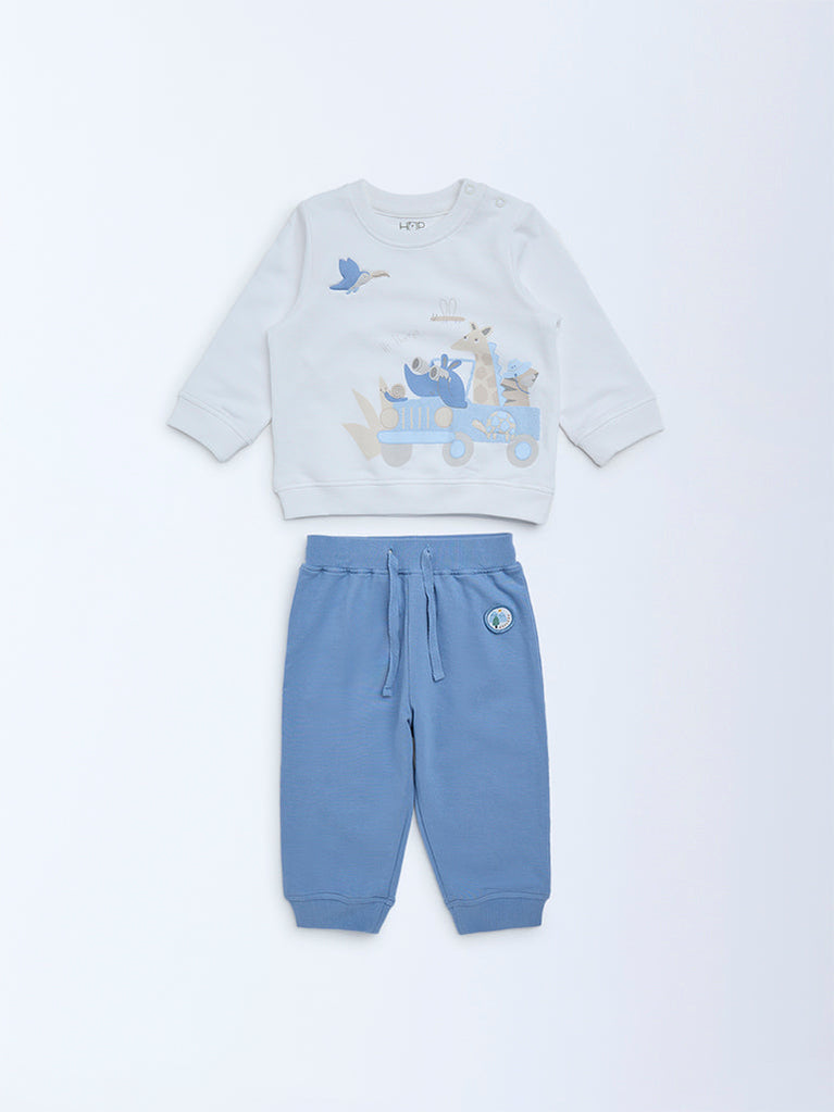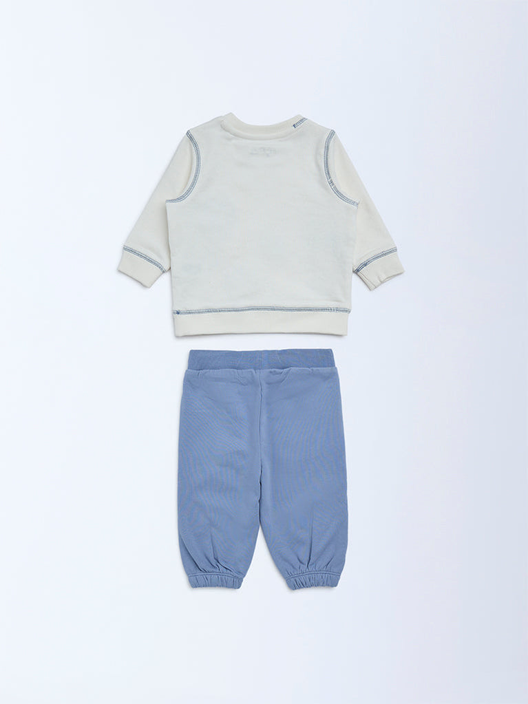 HOP Baby Boys Off-White Cotton-Blend Sweatshirt and Joggers Set