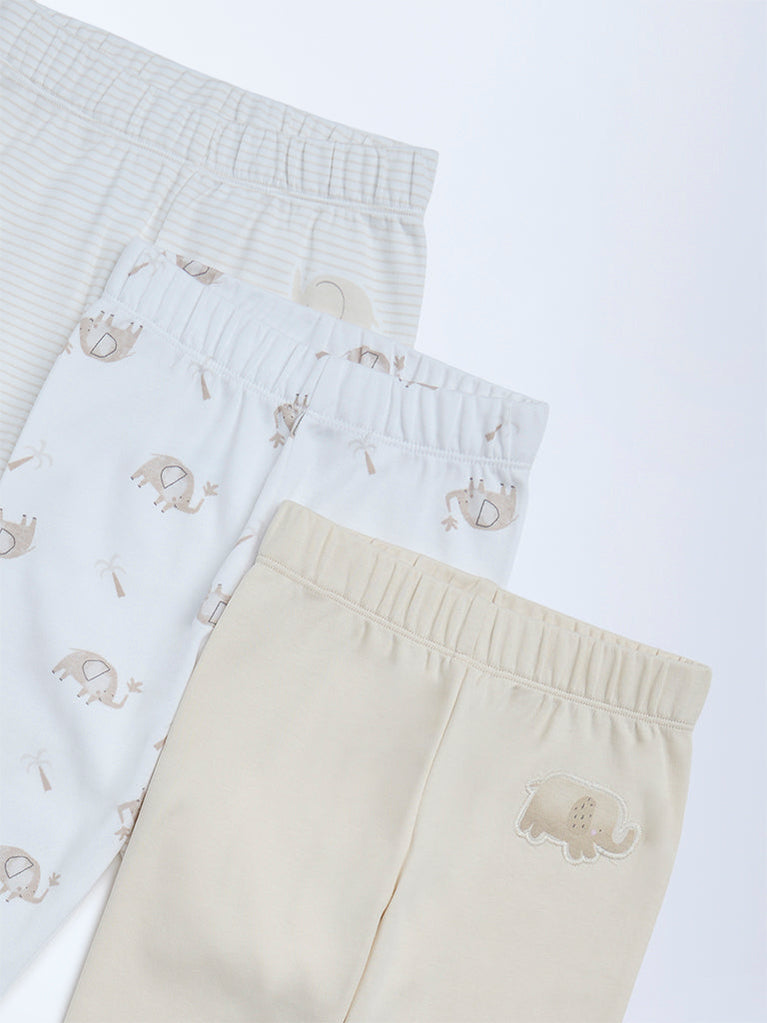 HOP Baby Boys Beige Printed Mid-Rise Cotton Pants - Pack of 3