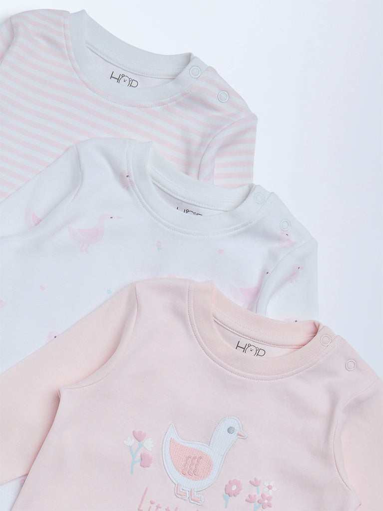 HOP Baby Girls Pink Printed Cotton T-Shirts - Pack of 3
