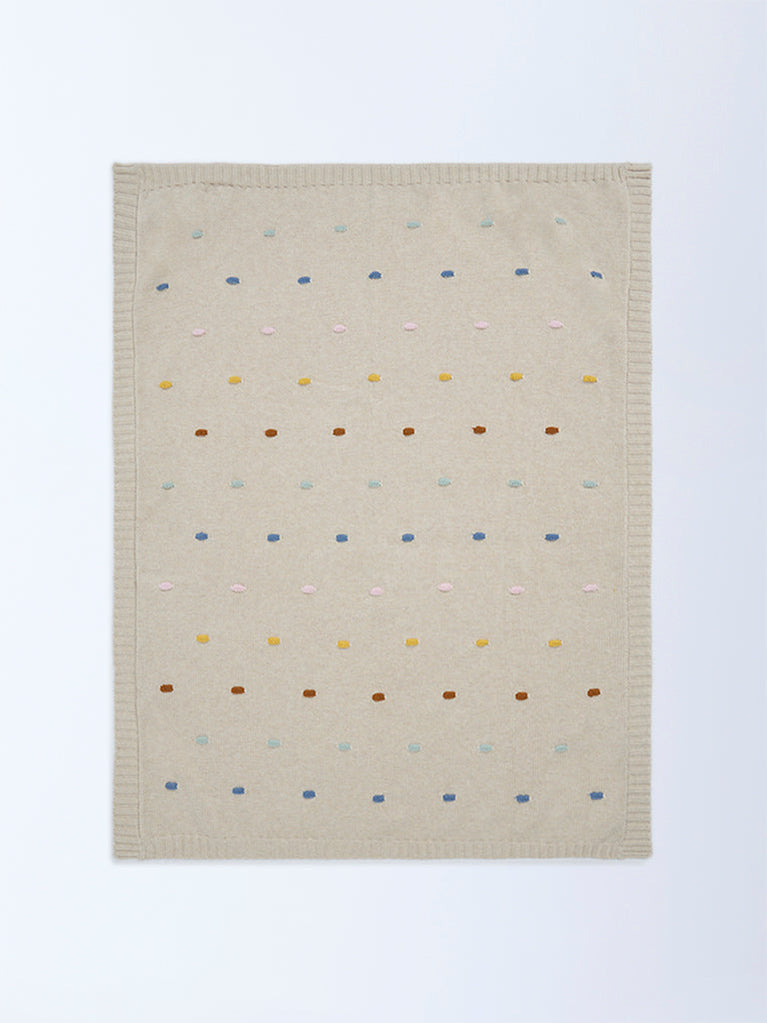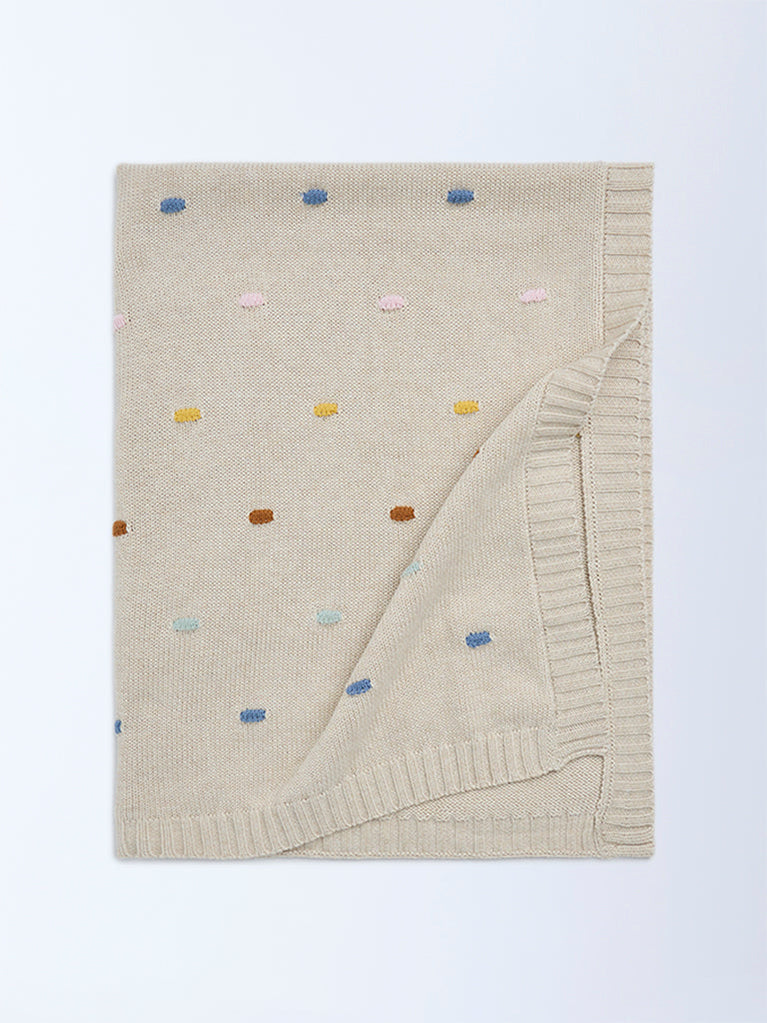 Nestling your little one in warmth and comfort, this neutral blanket by HOP Baby is made for cosy cuddles and peaceful rest. Designed in a soft beige tone with delicate multicolour dot detailing, it adds a subtle playful touch while keeping things calm and soothing. Woven from a breathable knit fabric, it feels soft against delicate skin and provides comforting warmth without feeling heavy.