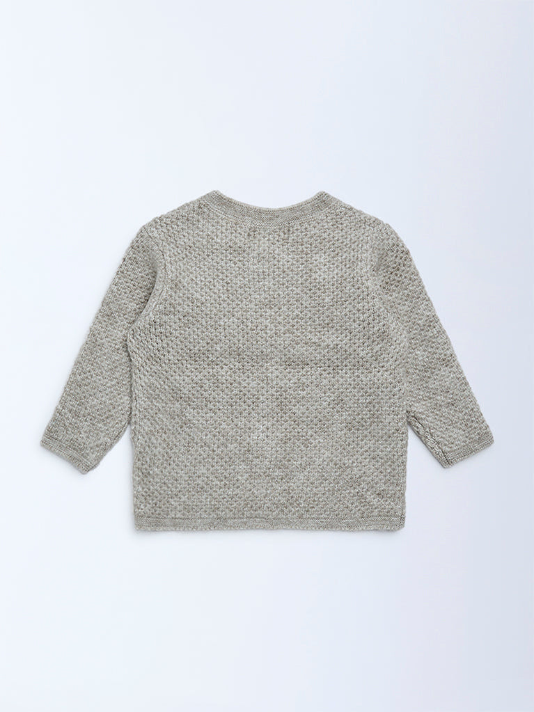 This brown sweater from HOP Baby is woven from a soft, premium knit for gentle warmth and all-day comfort. Styled with a round neckline and button placket, it features full sleeves to keep little ones cosy while offering an easy, classic look.