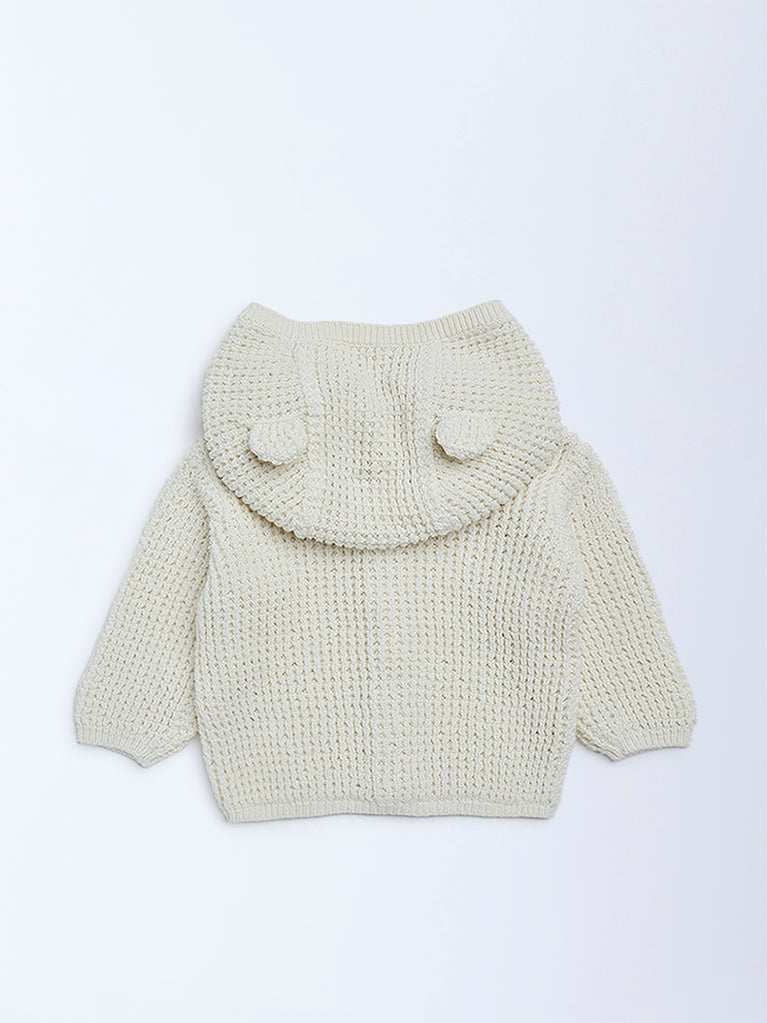 HOP Baby Girls Cream Knit-Textured Hooded Cotton Sweater