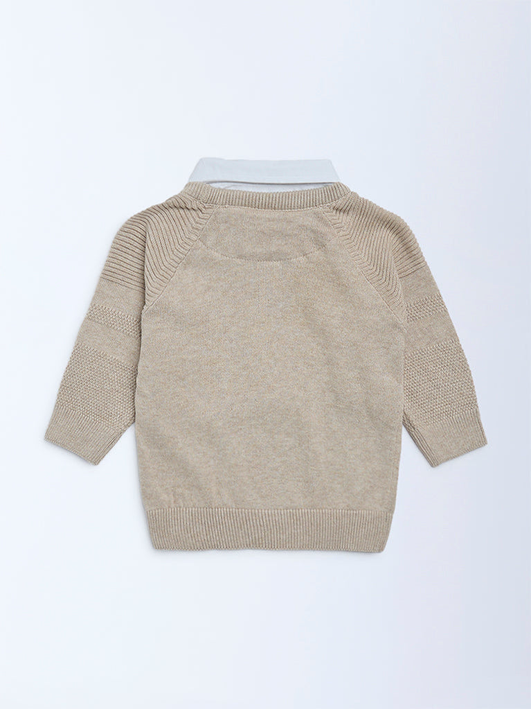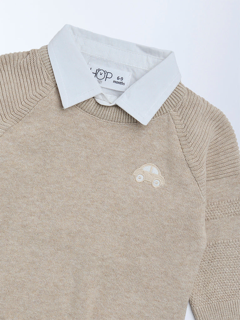 This brown sweater from HOP Baby is spun from pure cotton with a textured knit finish for soft, breathable comfort. Designed with a crisp collar and full sleeves, it offers a smart, lightweight layer—warm enough for cooler days without feeling bulky.
