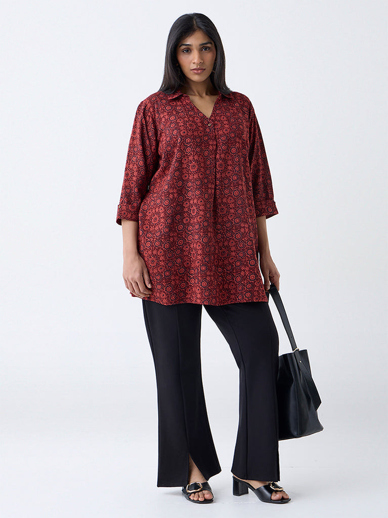 Add a touch of vibrancy to your wardrobe with this red tunic from Diza. Showcasing striking prints, it features a V-neck, button placket and three-quarter sleeves that create a balanced look. Crafted from soft, breathable fabric, it promises all-day comfort while keeping the aesthetic effortlessly elegant.