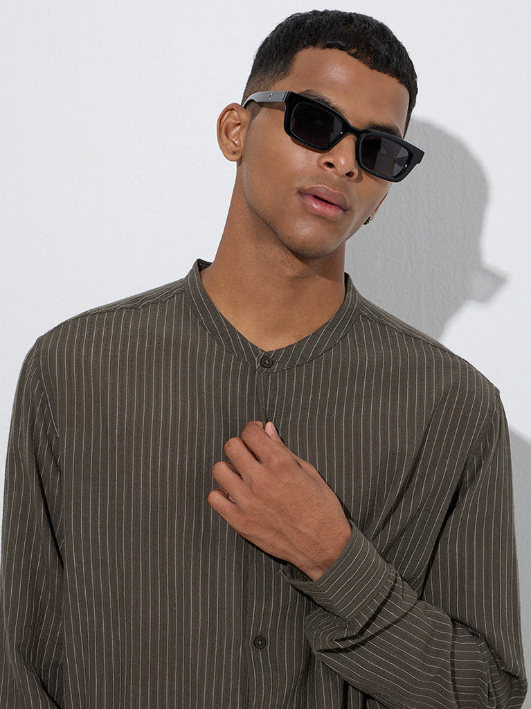 ETA Olive Striped Relaxed-Fit Cotton Shirt