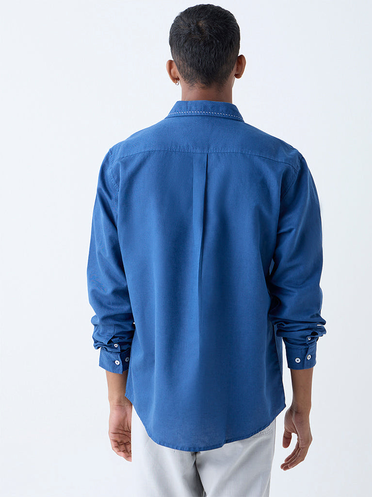 ETA Navy Solid Relaxed-Fit Cotton Shirt