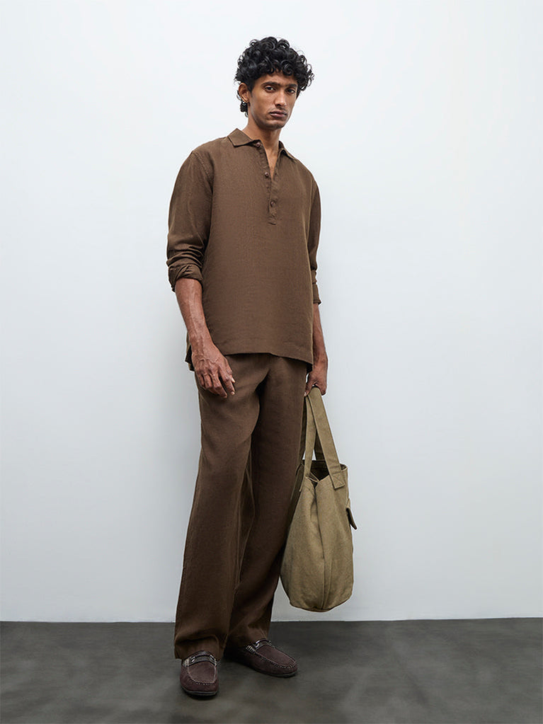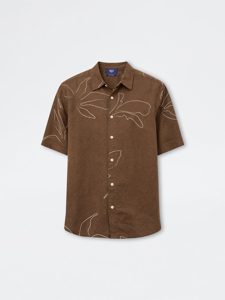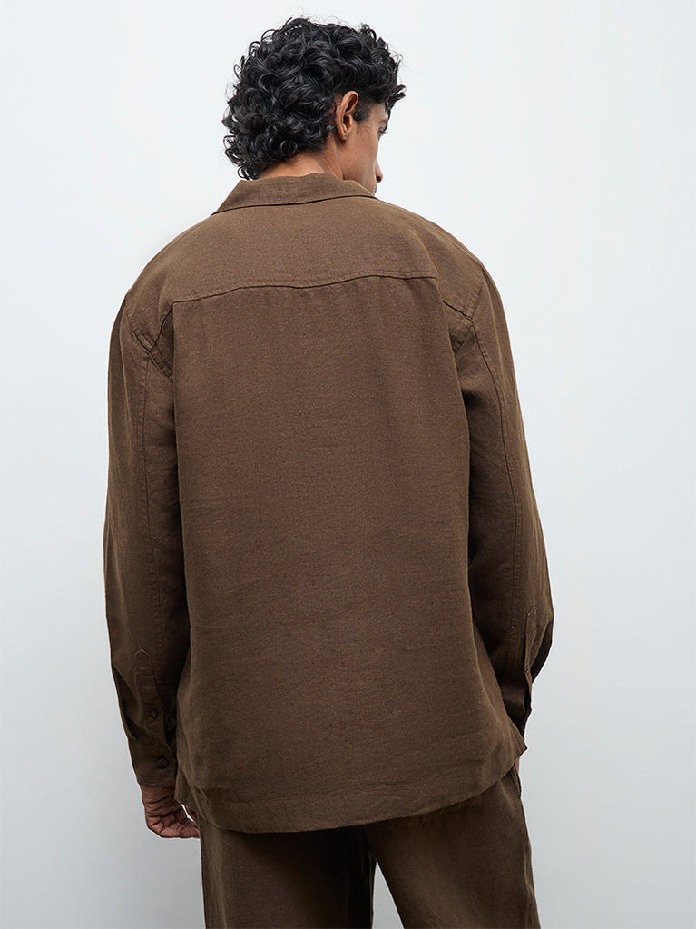 Ascot Dark Brown Relaxed-Fit Linen Shirt