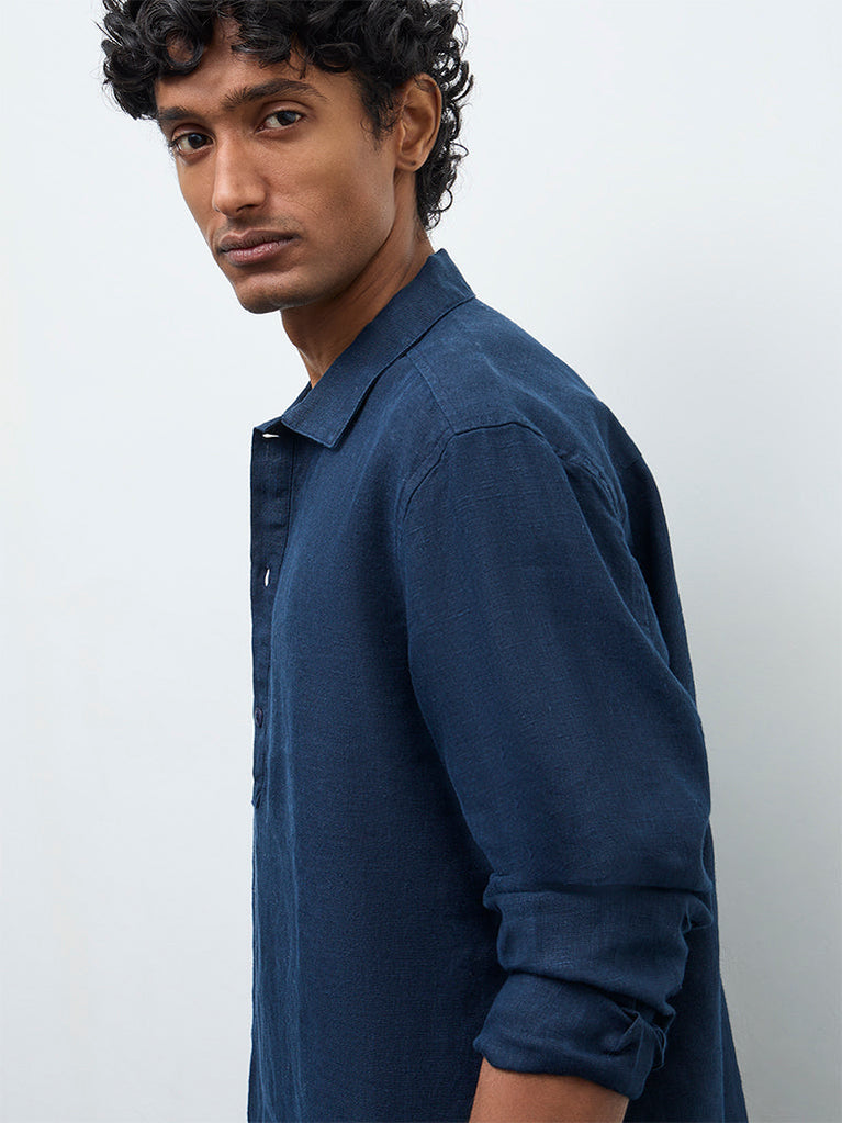 Ascot Navy Relaxed-Fit Linen Shirt