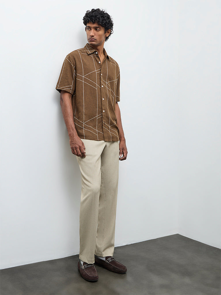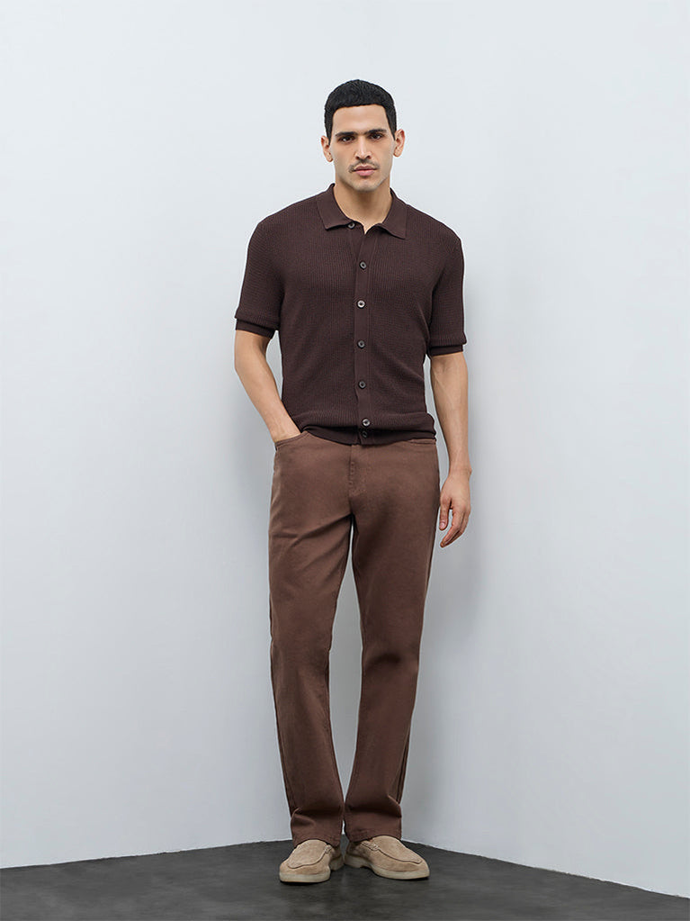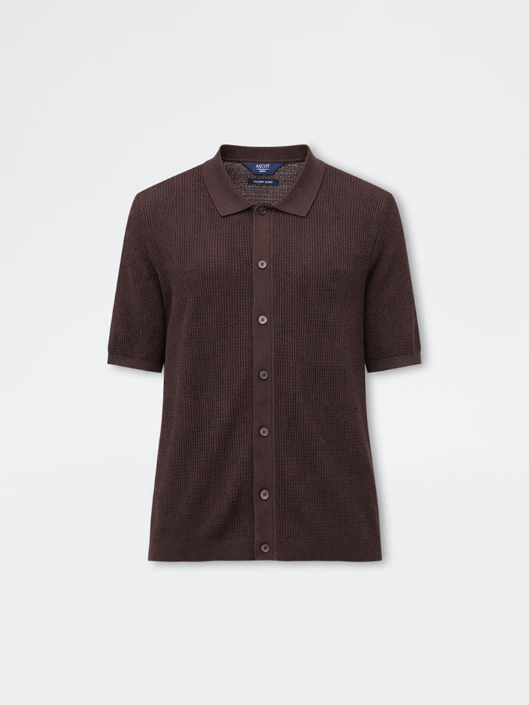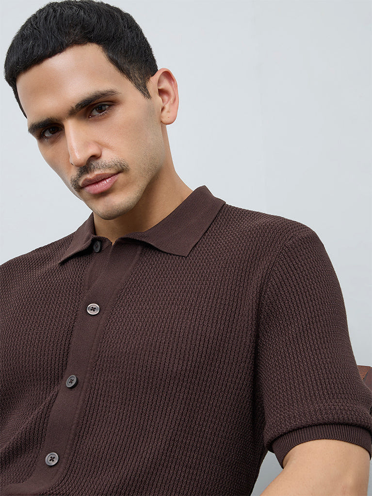 Ascot Brown Knit-Textured Relaxed-Fit Shirt