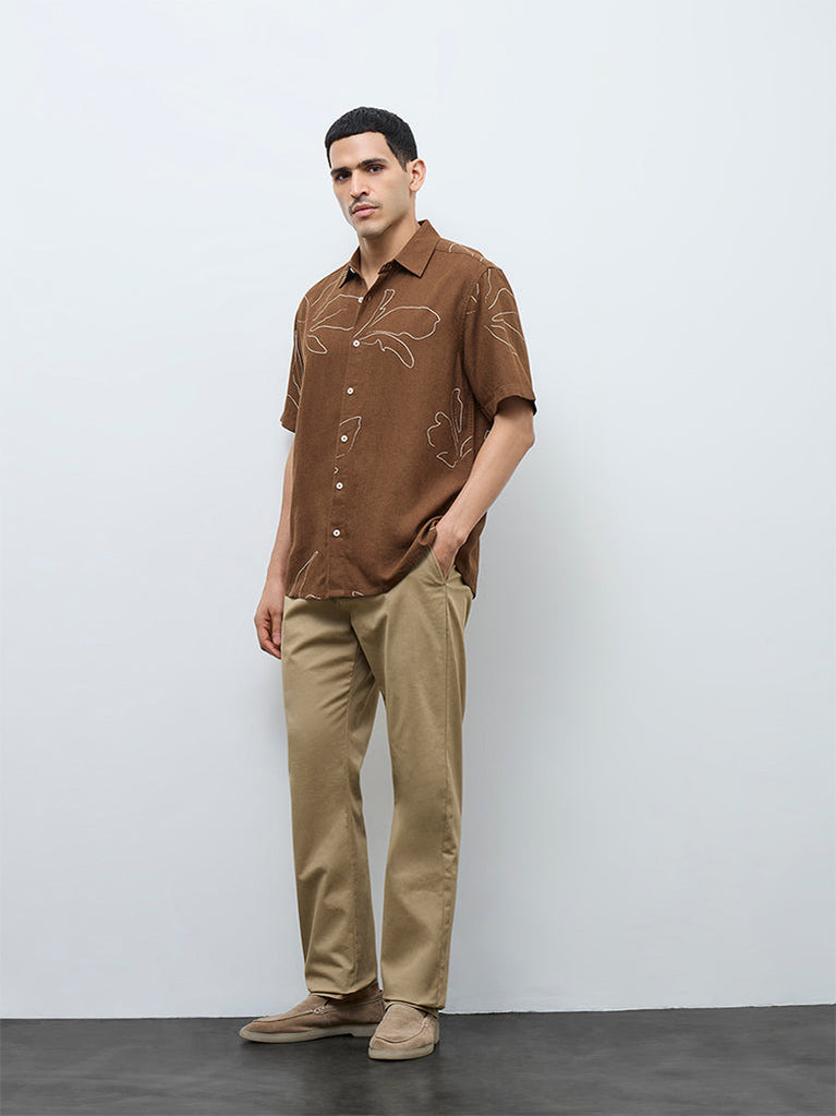 Ascot Taupe Floral Pattern Relaxed-Fit Shirt