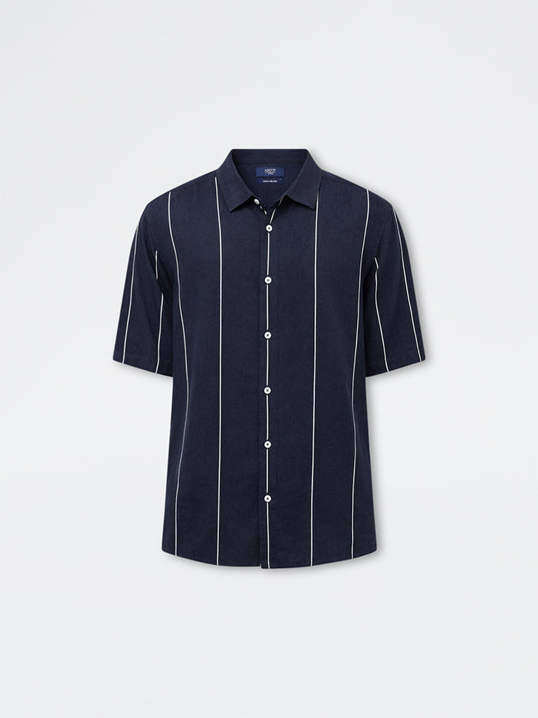 Ascot Navy Stripe Printed Relaxed-Fit Shirt