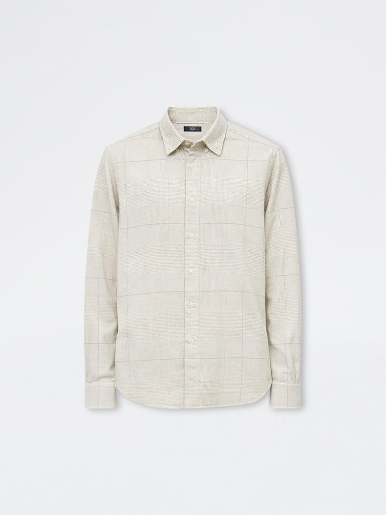 This off-white shirt from Ascot is accented with stripe patterns for a timeless appeal. Shaped in a relaxed silhouette, it features a button-down collar and full sleeves that keep the look sharp and composed. Crafted from a rich linen fabric, it offers lasting comfort and easy wear, making it a dependable everyday staple.