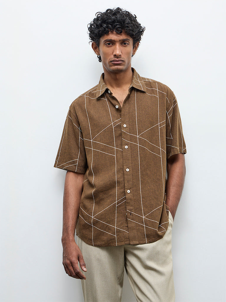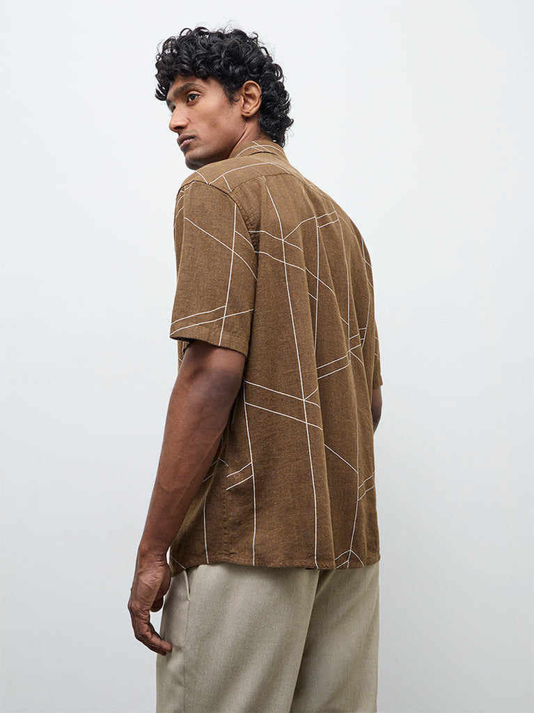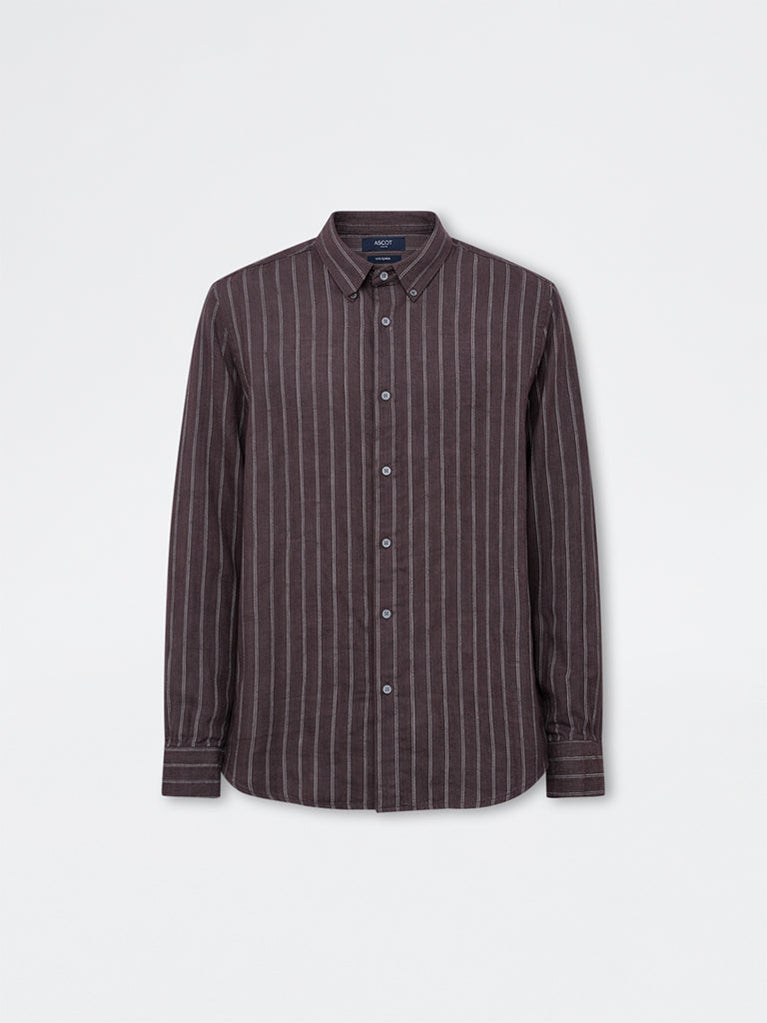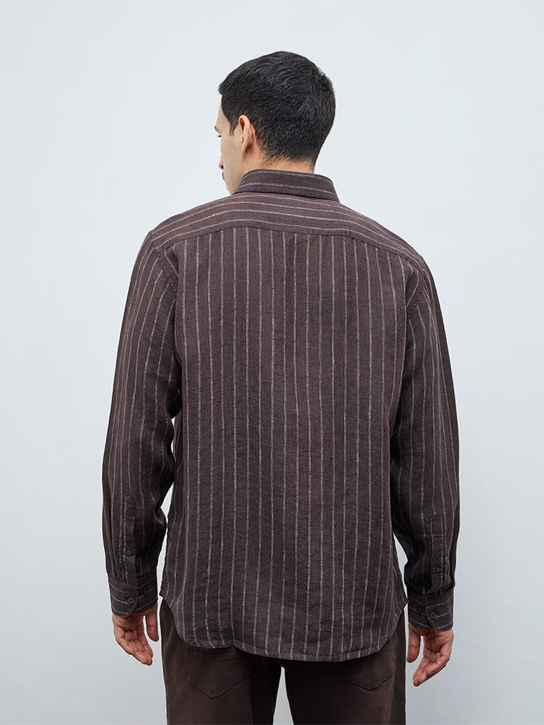Ascot Dark Brown Striped Relaxed-Fit Linen Shirt