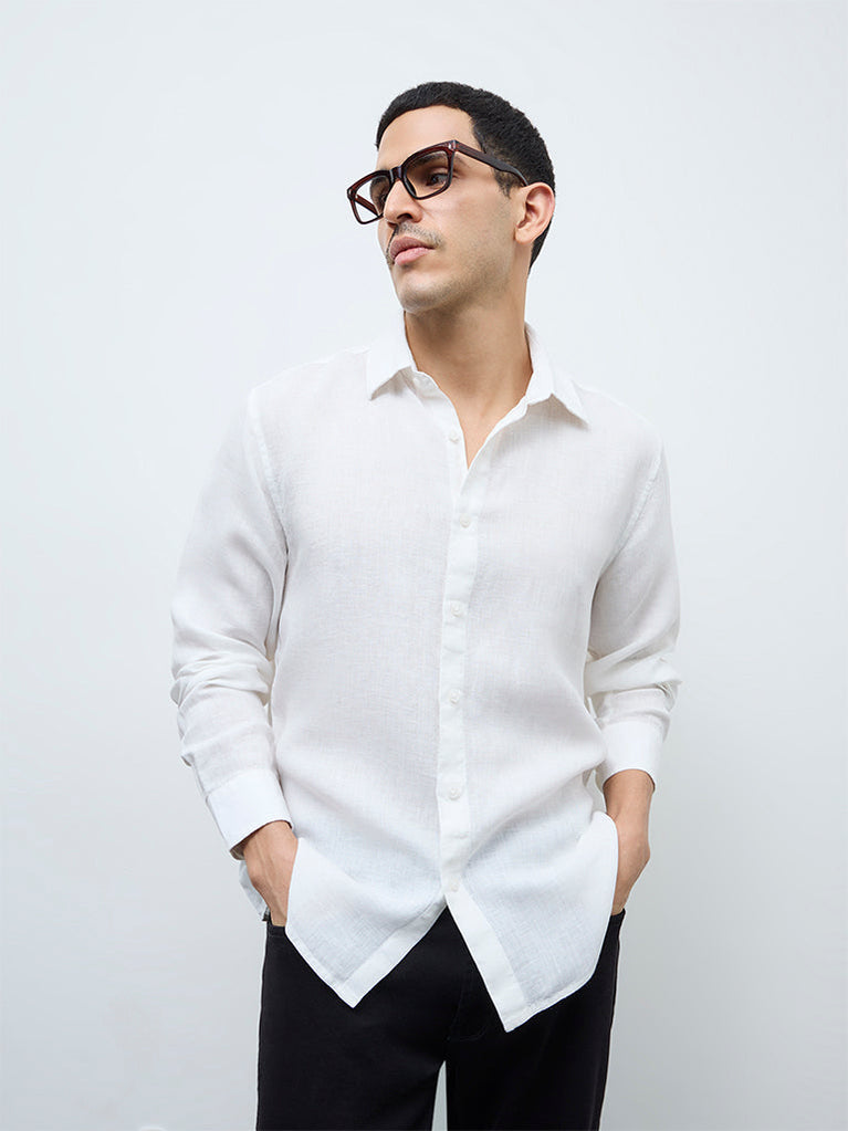 Ascot White Relaxed-Fit Linen Shirt