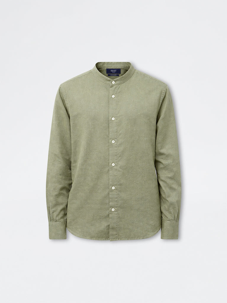 This light olive shirt from Ascot brings a refined ease to your everyday wardrobe. Shaped in a relaxed fit, it features a band neck, a buttoned placket and full sleeves for poised appeal. Crafted from a lightweight fabric, it offers a breathable feel suited for all-day wear.