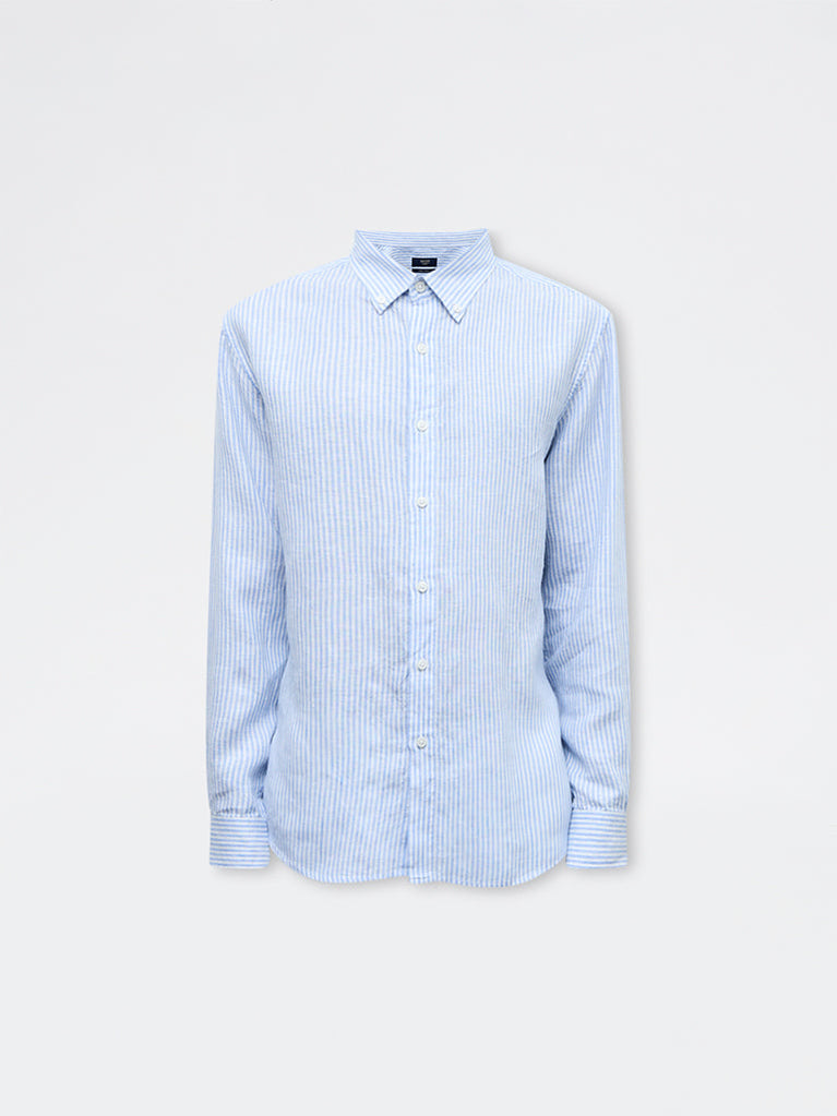 This light blue shirt from Ascot is crafted from a sumptuous linen fabric, offering effortless comfort for long wear hours. Featuring timeless stripe patterns, it is designed with a button-down collar, a buttoned placket and full sleeves for a timeless look. Framed in a relaxed-fit, it delivers an understated polish, making it perfect for casual and everyday wear.