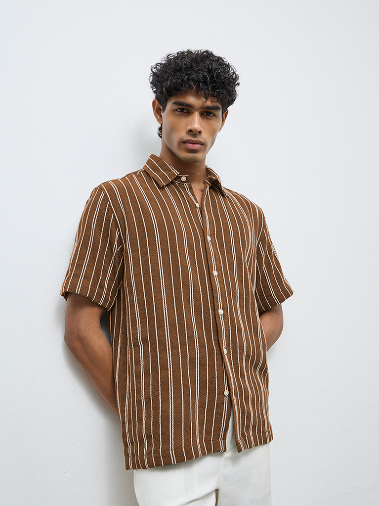 ETA Brown Striped Relaxed-Fit Cotton Shirt