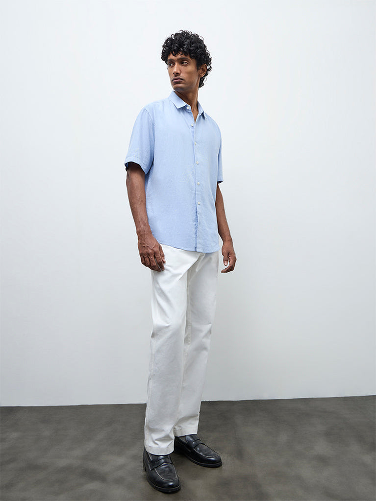 Ascot Light Blue Solid Relaxed-Fit Shirt